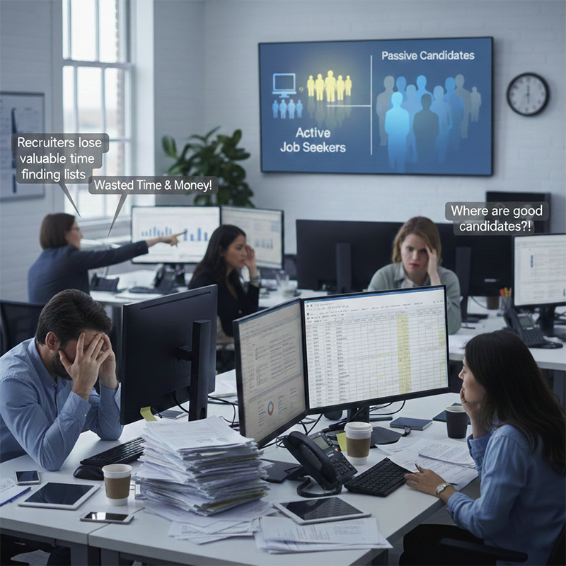• Recruiters lose valuable time finding lists instead of filling roles.